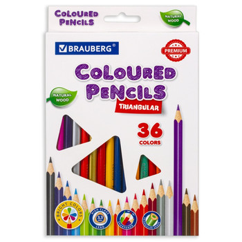 Карандаши 36цв PREMIUM, трехгранные, грифель мягкий 3,3 мм, к/у449.18 ₽