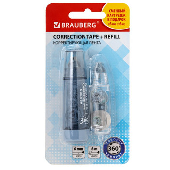 Корректирующая лента 6мм* 6м BRAUBERG 360 + сменный картридж, синий корп. блисте149.93 ₽