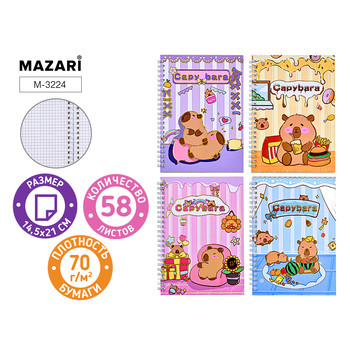 Блокнот 58л 14,5*21см КАПИБАРА спираль, ассорти112.43 ₽